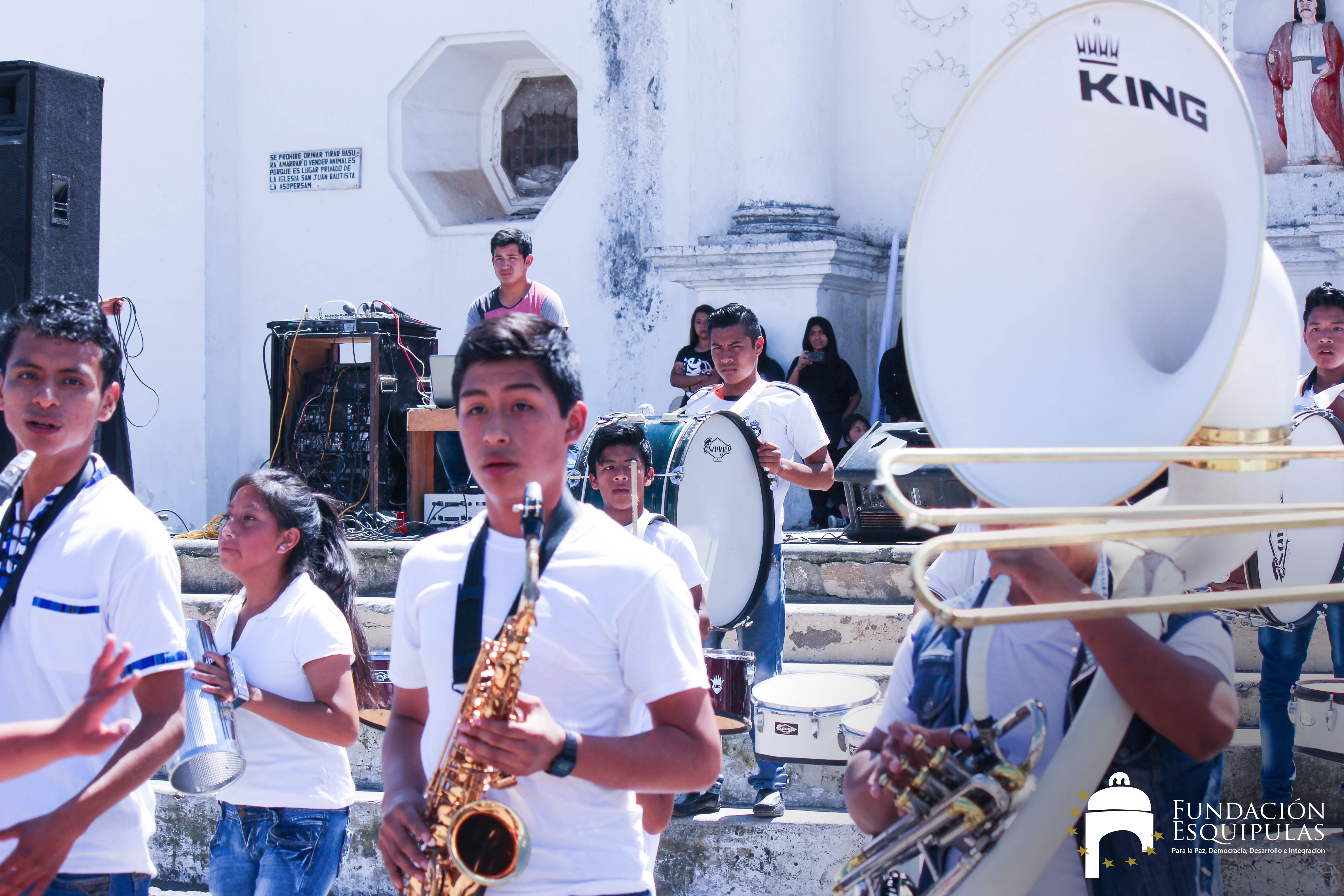 La presentación en Comalapa se realizó en el marco del festival Q’atsuy, organizado por el Colectivo Yo También Decido, organización que capacita y fortalece las capacidades de los niños y jóvenes de Comalapa; dicha organización de la sociedad civil es una de varias que forman parte de las Iniciativas por la Paz y la Democracia.