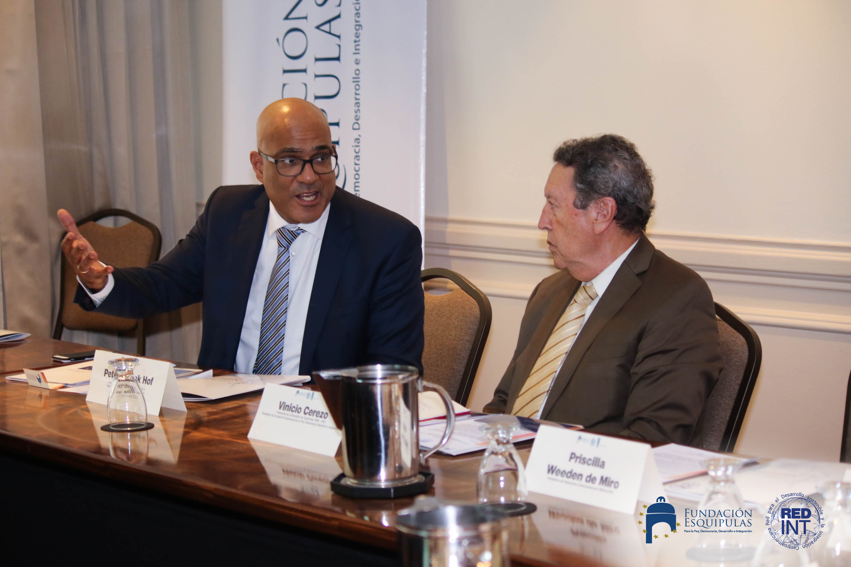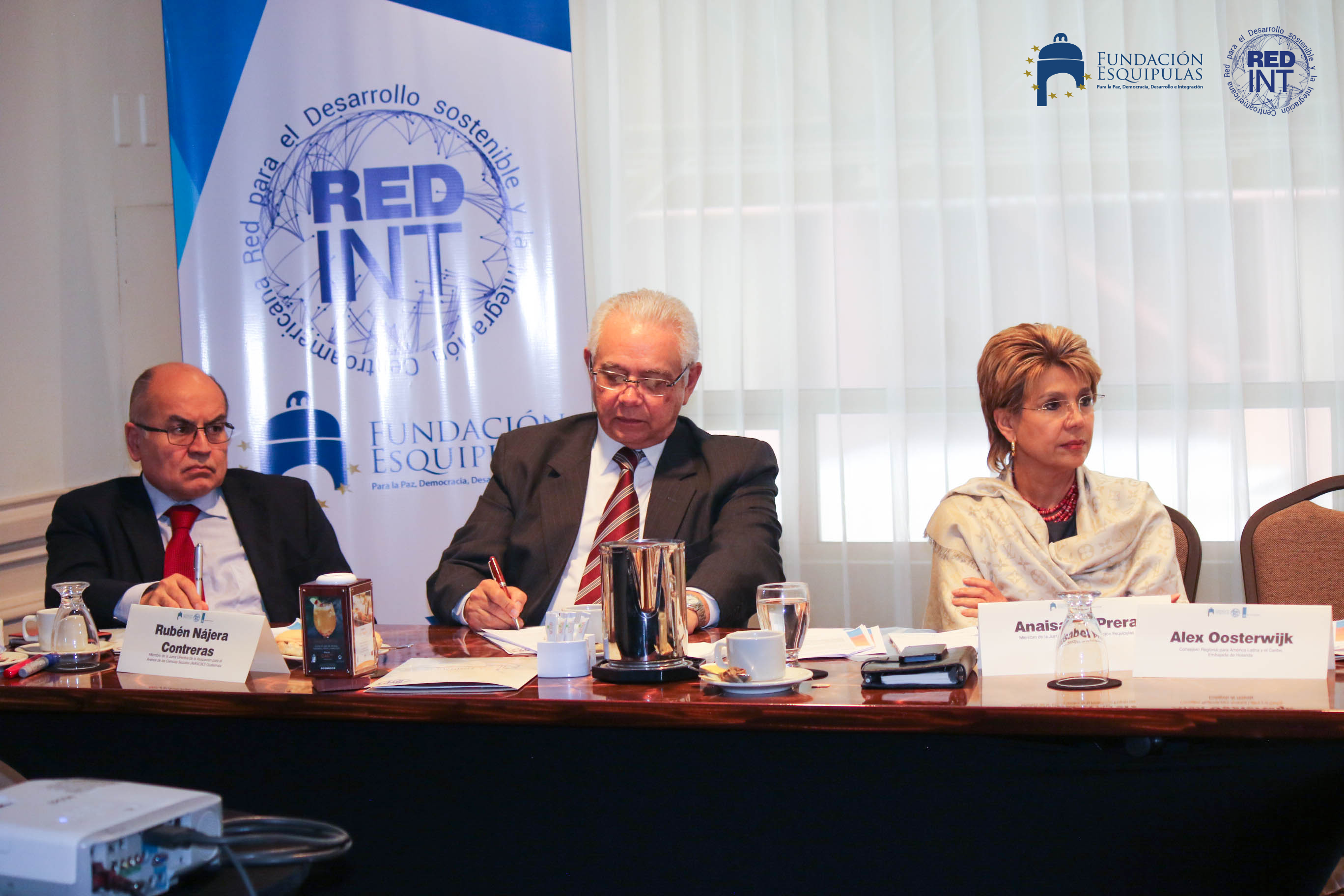 El dialogo contó con la participación del ExcelentÃsimo embajador del Reino de los PaÃses Bajos, el Señor Peter Derek Hof; la excelentÃsima señora Priscila Weeden de Miro, Presidenta del Parlamento Centroamericano; José Luis Velázquez, Universidad Thomas More, Nicaragua; Roger Rodas, Diputado de Guatemala en el Parlacen; Rubén Nájera, Miembro de Junta Directiva AVANCSO; Eduardo Espinoza, Director del Centro de Estudios de Integración Económica SIECA; Ãlex Oosterwijk, Consejo Regional para América Latina y el Caribe; Raquel Zelaya, Presidenta de la Asociación de Investigaciones y Estudios Sociales (ASIES); Patricia Lucki, REDINT; Dora Alicia Cruz, REDINT; Edgar Chamorro, Director de REDINT; Vinicio Cerezo, Ex Presidente de Guatemala; Olinda Salguero, Directora Ejecutiva de Fundación Esquipulas.