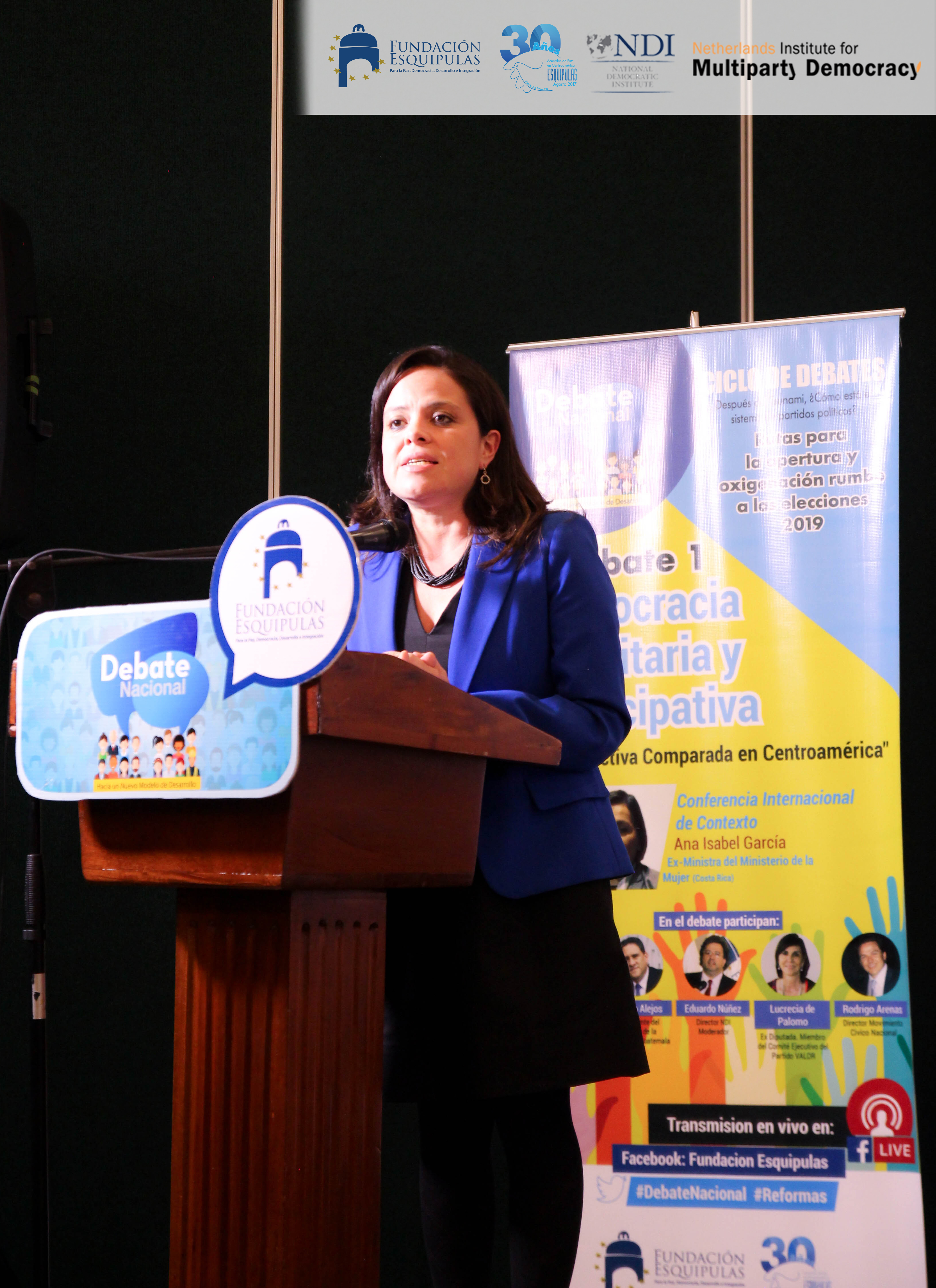 Inmediatamente después de la conferencia de la Ex Ministra  Ana Isabel,  inicio el espacio para de debate, que contó con la participación de Roberto Alejos, Ex Presidente del Congreso de la República; Otilia Lux, Ex Diputada al Congreso de la República; Lucrecia Marroquín De Palomo, Ex -Diputada, Miembro del Comité Ejecutivo de Valor y Rodrigo Arenas, Movimiento Cívico Nacional. La moderación estuvo a cargo de Moderador: Eduardo Núñez, Director Residente, NDI Guatemala.