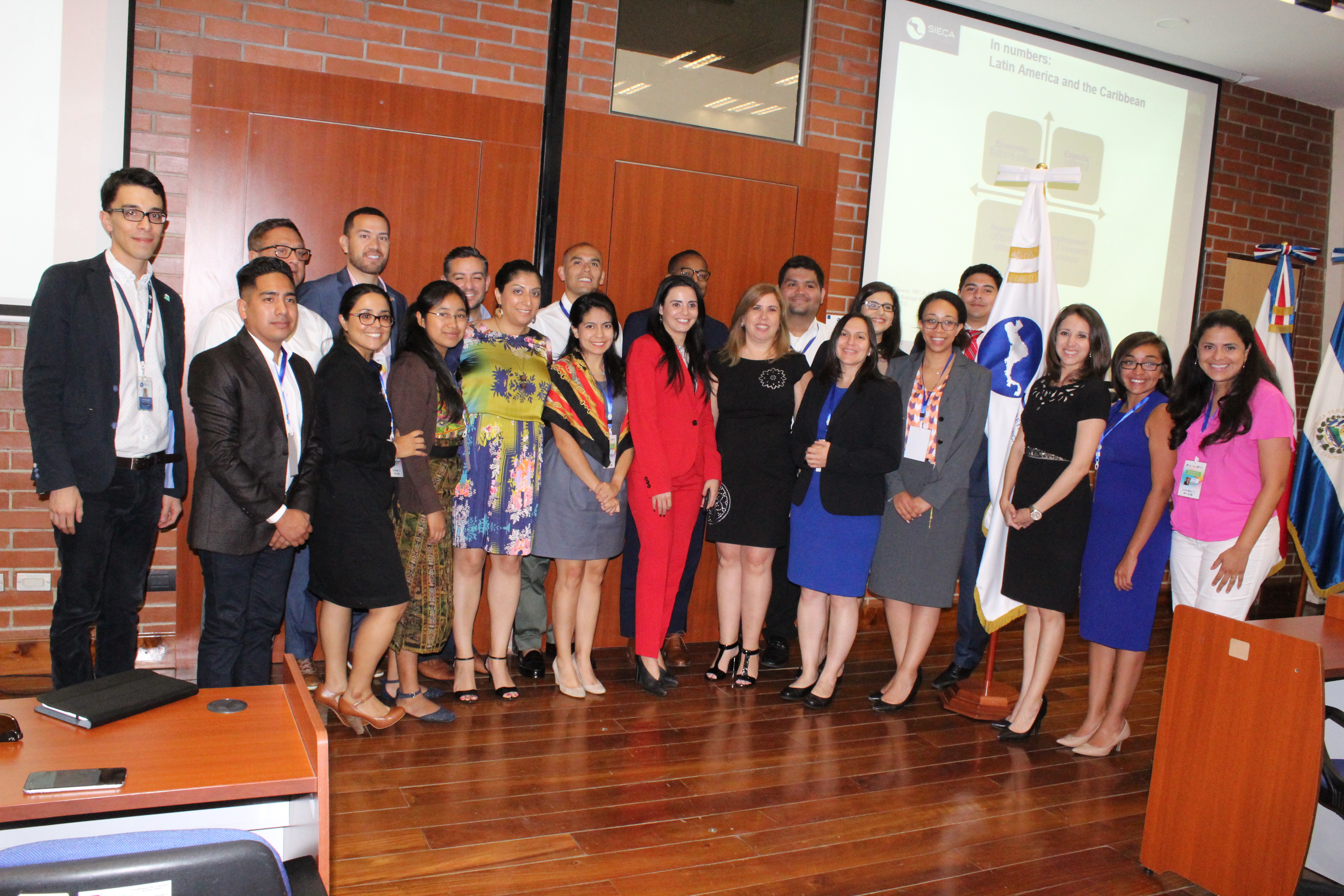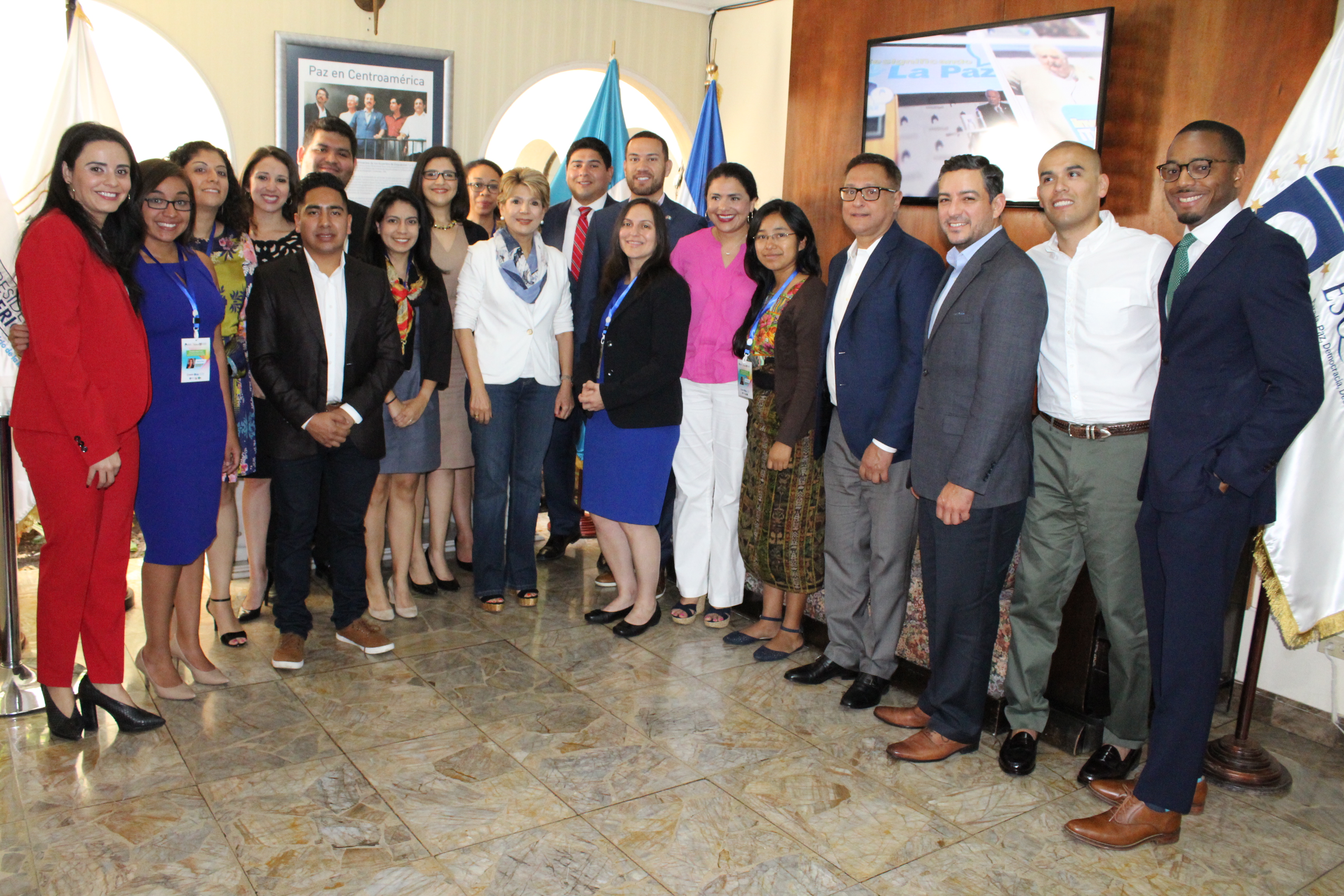 Por la tarde, los jóvenes fueron trasladados a la SecretarÃa de Integración Económica Centroamericana SIECA, donde fueron recibidos por la Secretaria General, Carmen Gisela Vergara, quien brindó una conferencia sobre las EconomÃa Naranja y Azul: oportunidades demográficas para la región.