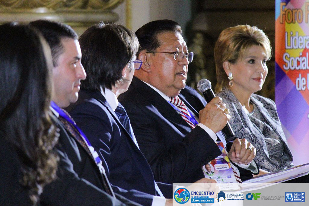 El Foro presento un panel de emprendedores de alto nivel representado por Anaisabel Ex embajadora en Francia en UNESCO, especialista en democracia, cultura de paz y no violencia, miembro de Consejo Consultivo de Fundación Esquipulas; Mario Peña, empresario emergente presidente de la Megapaca; Sarah Alzugaray, empresaria, conferencista y mentora de emprendedores jóvenes; Rolando Pineda Lam, empresario de mercadeo Inmobiliario, el panel fue moderado por Christian Asinelli, director Corporativo de Desarrollo Institucional de CAF.