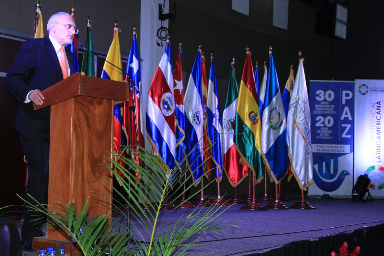 En el marco de las Iniciativas por la Paz, del 30 Aniversario de los Acuerdos de Paz en Centroamérica, tres décadas de democracia y veinte años de la Firma de la Paz en Guatemala. Filgua, Foro Regional Esquipulas, Fundación Esquipulas y Misión Presidencial Latinoamericana, realizaron la Charla Inaugural de la XIII Feria Internacional del Libro de Guatemala (FILGUA) y XX Feria Internacional del Libro de Centroamérica (FILCEN) Impartida por Carlos Mesa, PolÃtico, historiador, periodista y Ex Presidente de Bolivia.