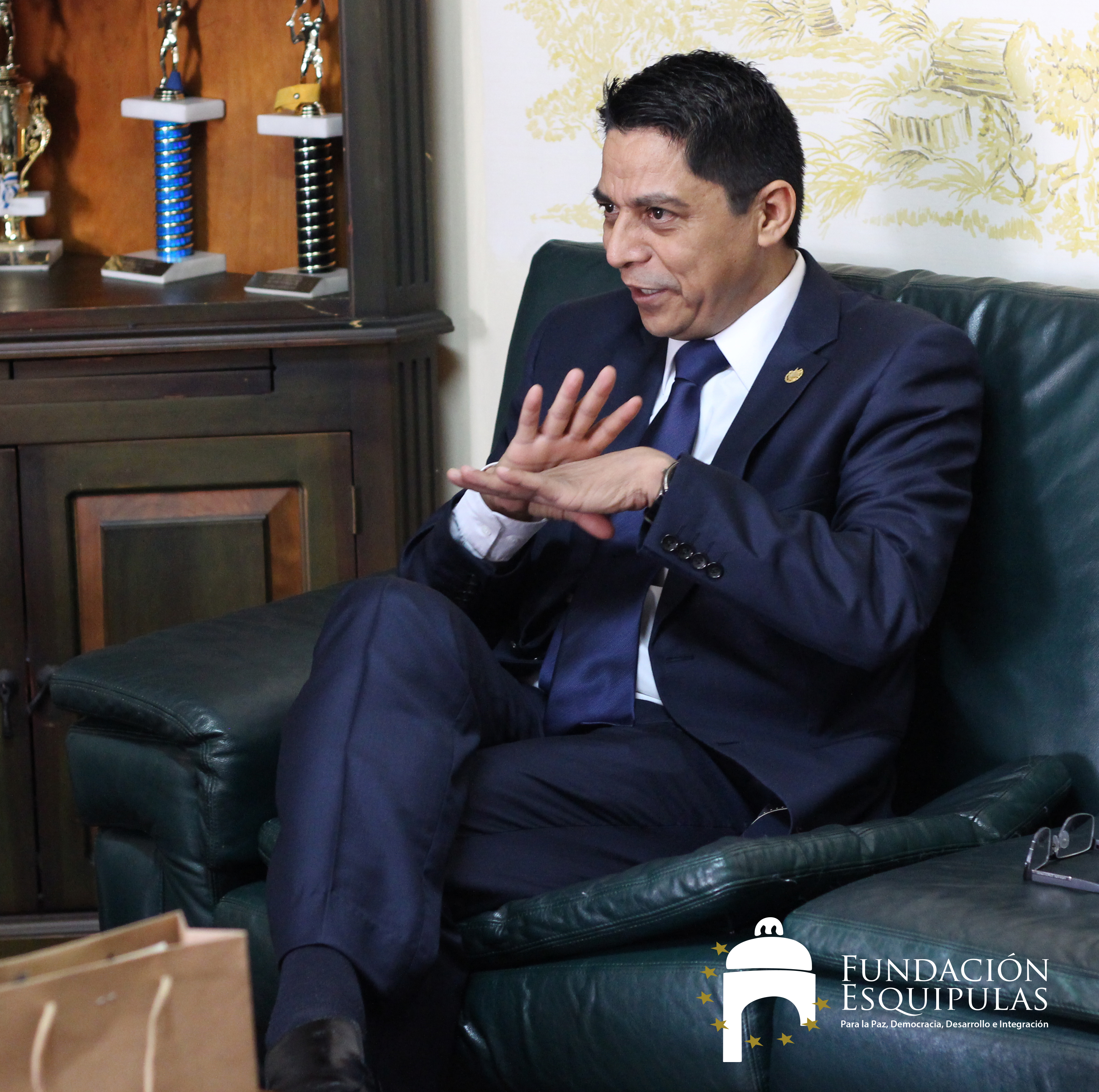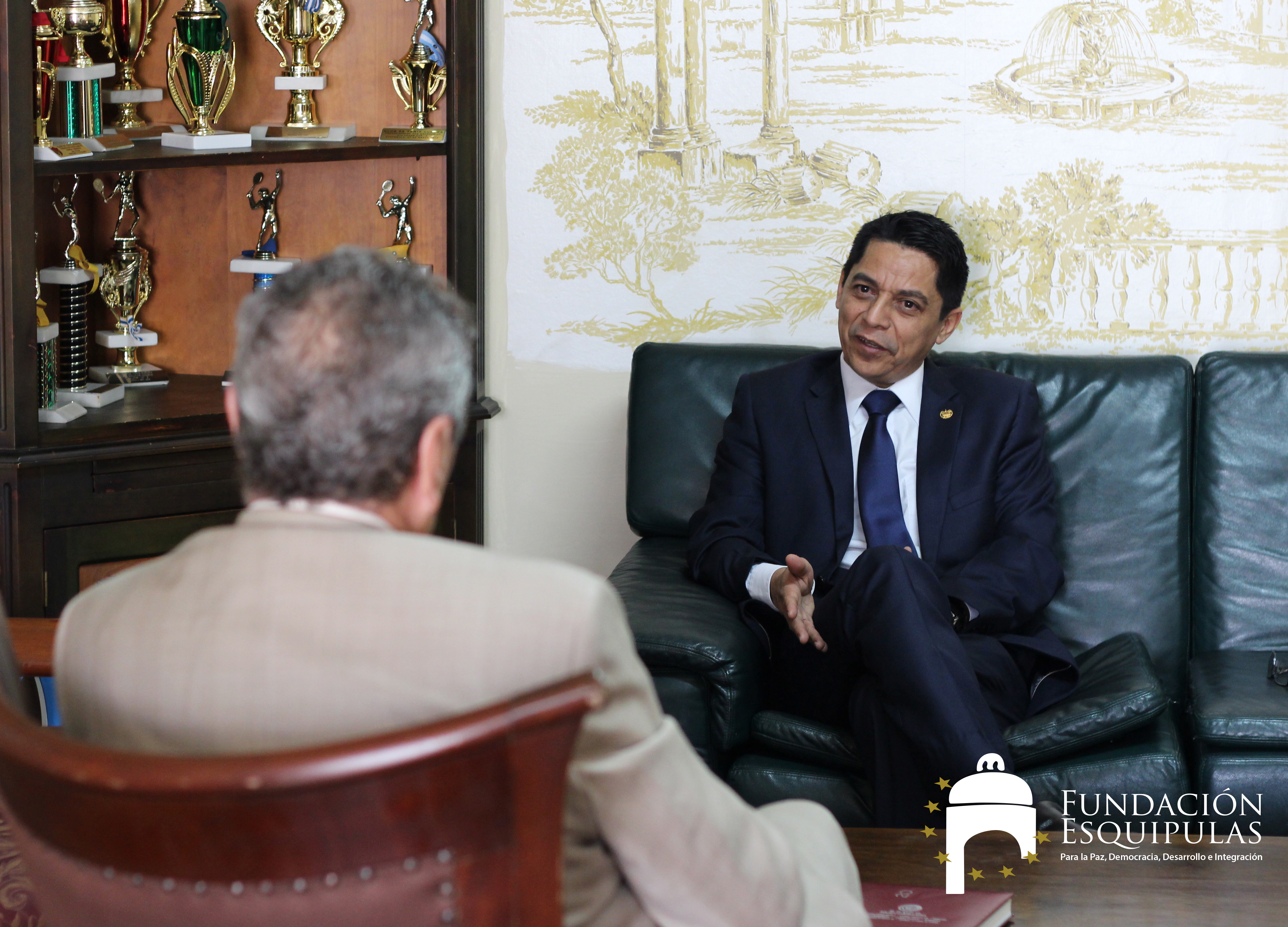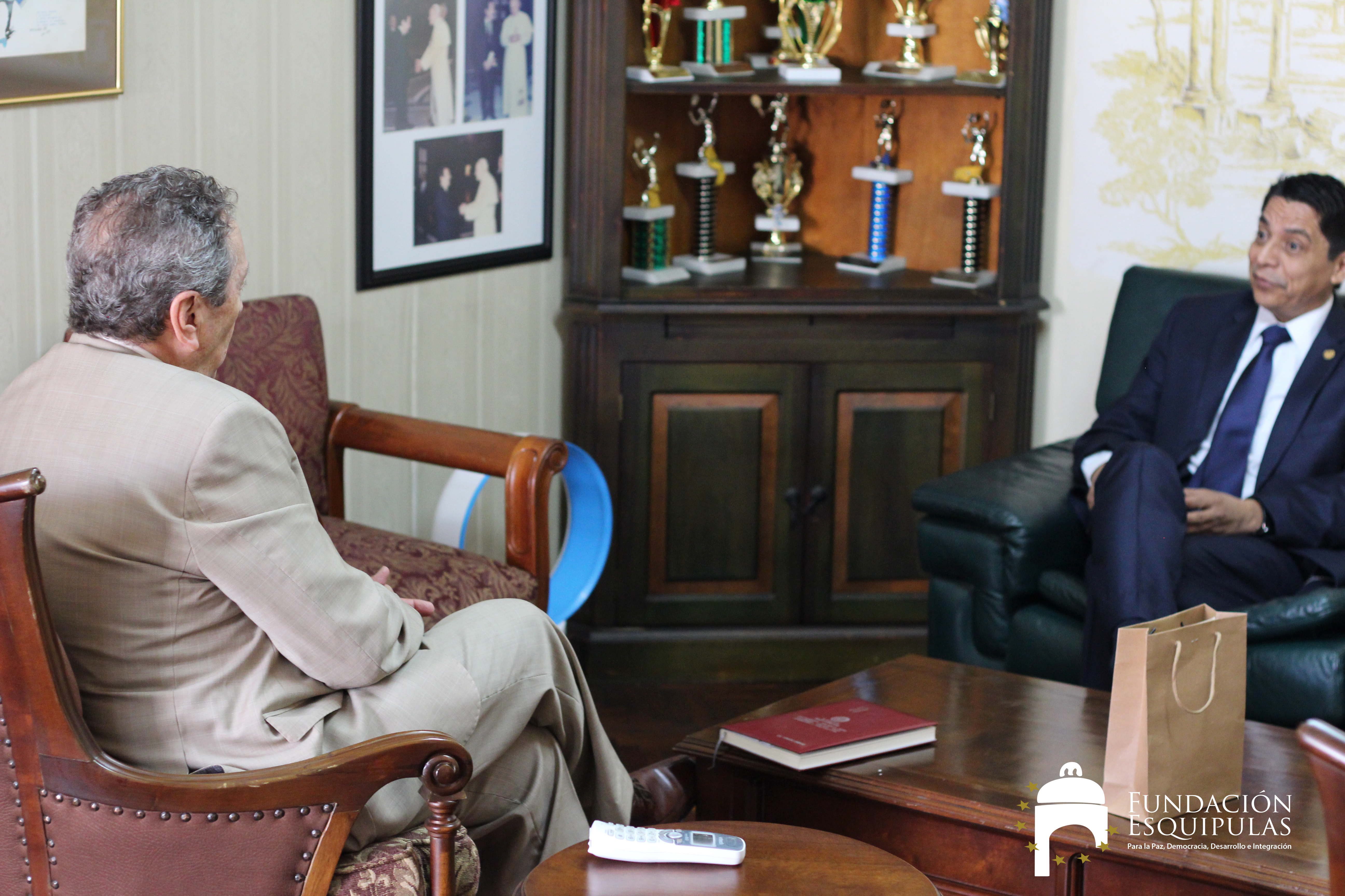 En la sede de Fundación Esquipulas se llevó a cabo el encuentro con el ExcelentÃsimo Señor Embajador del El Salvador Oscar Hernández y el Presidente de Fundación Esquipulas Vinicio Cerezo, quienes dialogaron temas concernientes a la Paz en la región, en el marco de la celebración de los 25 años de Acuerdos de Paz en El Salvador.