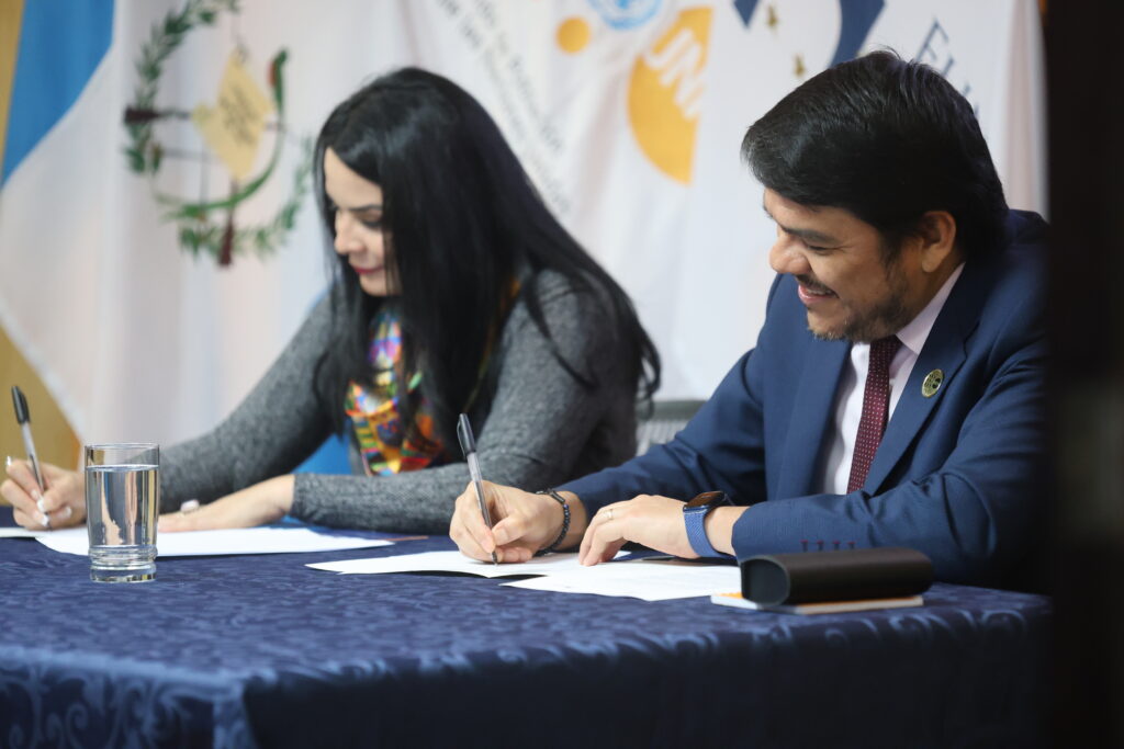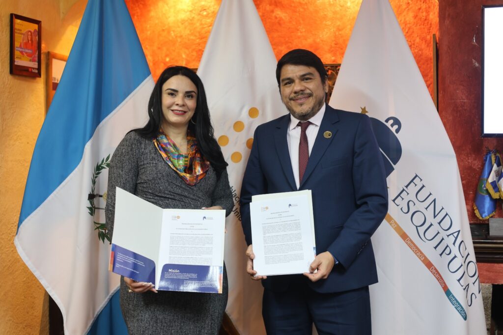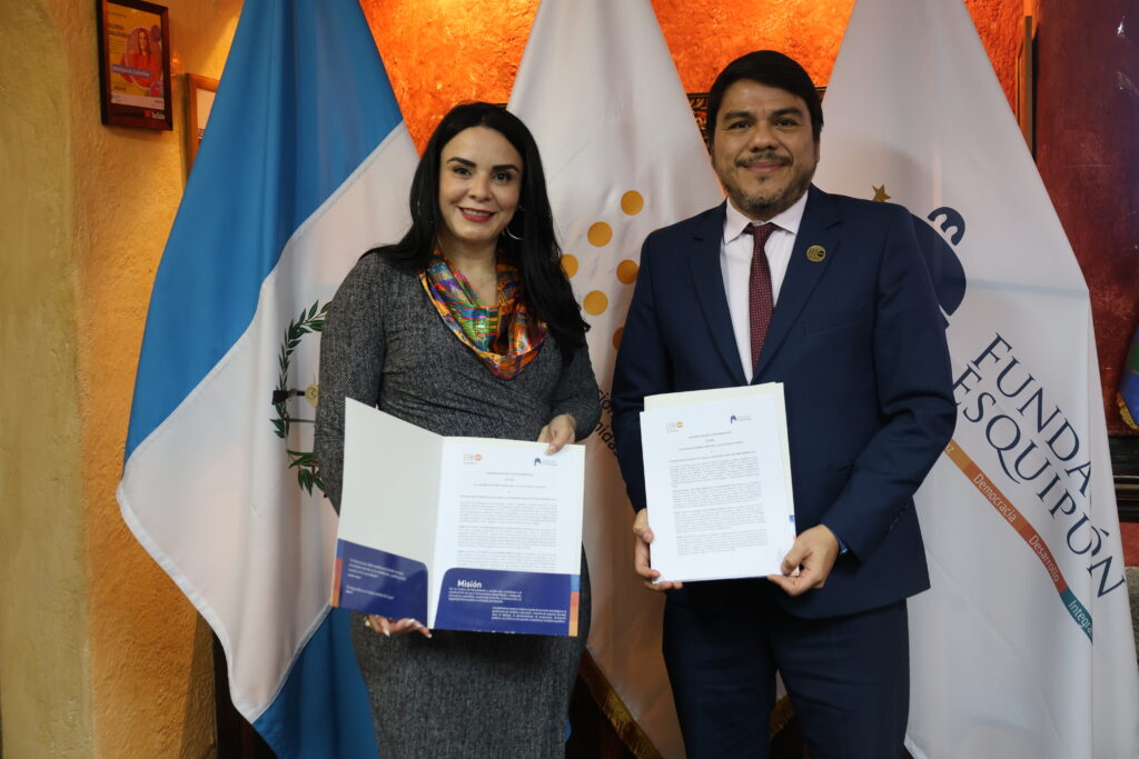La firma se llevó a cabo este jueves en la sede de la Fundación Esquipulas encabezada por Víctor Valdivieso, representante de UNFPA, y Olinda Salguero, presidenta de la Fundación Esquipulas. El acuerdo establece un marco de cooperación orientado a fortalecer el liderazgo cívico-político, promover entornos seguros de participación y acompañar procesos institucionales vinculados a la Política Nacional de Juventud.